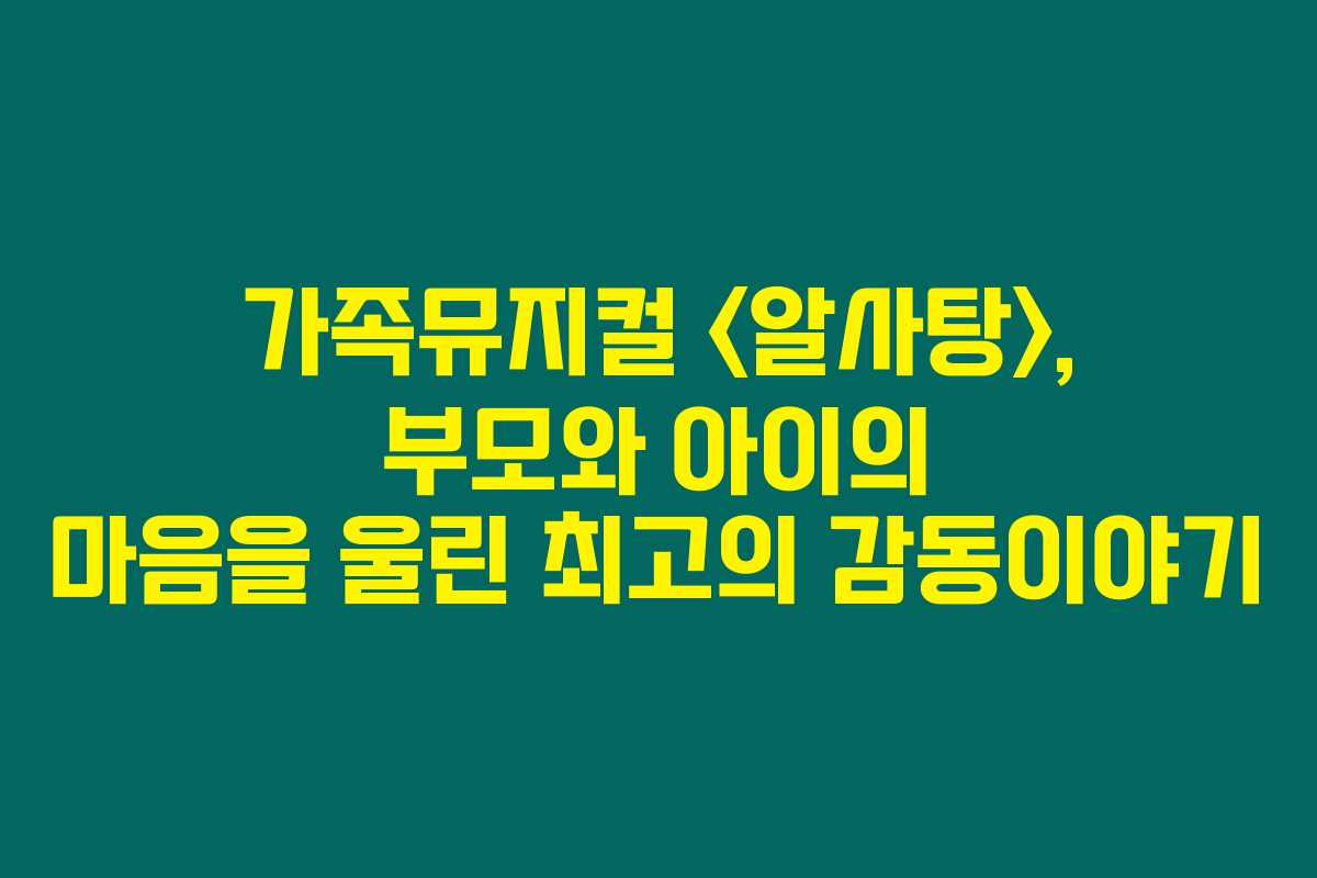 이처럼 가족뮤지컬 <알사탕>은 사랑과 소통의 깊이를 전달하는 이야기를 가지고 있습니다. 가족과 함께 즐길 수 있는 이 특별한 공연을 놓치지 말고, 한 번 경험해보시길 바랍니다!