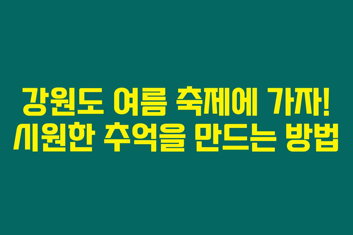 강원도에서 여름을 만끽할 수 있는 다양한 축제들에 대해 알아보세요. 여름 휴가를 더욱 특별하게 만들어 줄 강원도의 매력적인 축제들을 소개합니다. 아래를 읽어보시면 신나는 여름 축제 정보와 각 축제의 일정, 참여 방법에 대해 알차게 준비했습니다. 친구, 가족과 함께 여름 추억을 쌓아보세요!