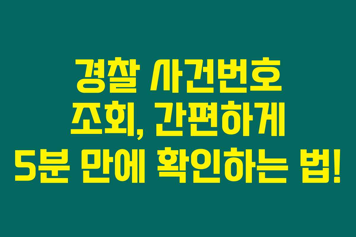 제가 직접 경험해본 결과로는, 경찰 사건번호 조회는 사건 진행 상황을 확인하는 데 매우 중요한 방법이에요. 사건번호가 있으면 경찰에 고소나 신고한 이후에 매번 경찰서를 방문하지 않고도 사건의 진행 상황을 확인할 수 있습니다. 아래를 읽어보시면, 제가 정리한 간편한 조회 방법을 통해 5분 만에 필요한 정보를 얻는 법을 알게 되실 거에요.