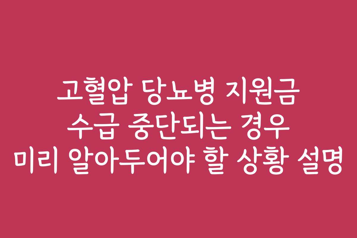 고혈압 당뇨병 지원금 수급 중단되는 경우 미리 알아두어야 할 상황 설명