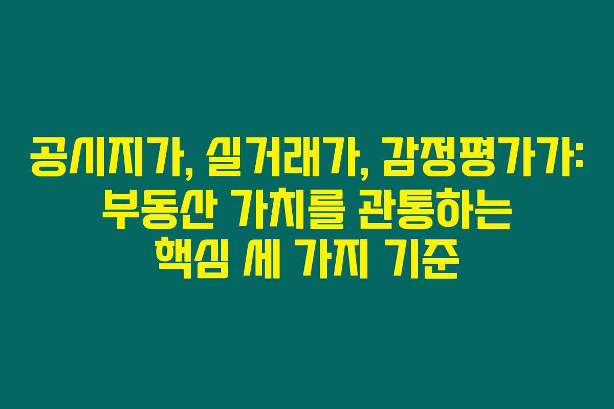 제가 직접 알아본 바로는, 부동산 시장에서 가격을 결정하는 요소로는 공시지가, 실거래가, 그리고 감정평가가가 있습니다. 이 세 가지 기준은 각각의 목적과 산정 방식이 다르기 때문에, 혼란을 겪기 쉽습니다. 아래를 읽어보시면 부동산 가치를 올바로 이해하고, 현명한 거래에 도움이 될 것입니다.