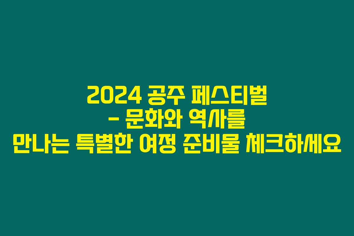 2024 공주 페스티벌을 준비하고 계신가요? 만약 당신이 한국의 역사와 문화를 직접 체험하고 싶다면 아래 내용을 꼭 보셔야 해요. 공주의 매력을 느끼고 싶다면 이번 포스팅을 놓치지 마세요!