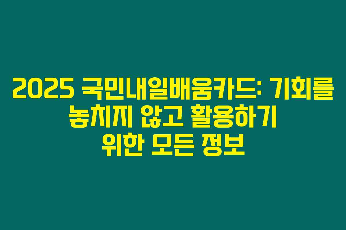 국민내일배움카드는 여러분의 취업과 커리어 전환을 위한 정부지원금이므로, 적극적으로 신청하고 활용해 보시기 바랍니다. 모르고 지나칠 수 있는 기회를 놓치지 않기 위해 항상 새로운 정보를 챙기는 것이 중요합니다.