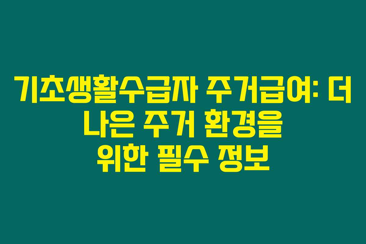 기초생활수급자 주거급여 제도의 변화는 더욱 많은 가구가 혜택을 누릴 수 있도록 돕는 중요한 변화입니다. 이번 기회를 통해 자격 요건을 충족하는 분들은 적극적으로 지원을 신청해주세요.