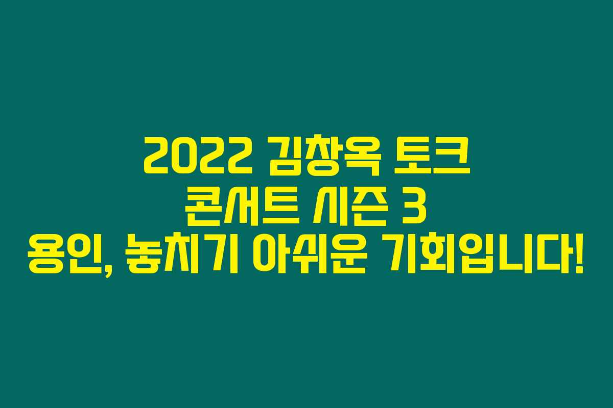 2022 김창옥 토크 콘서트 시즌 3 용인, 놓치기 아쉬운 기회입니다!