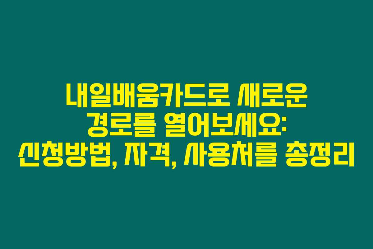 제가 직접 경험해본 결과로는, 내일배움카드라는 직업 훈련 카드를 통해 교육 기회를 확대하려는 많은 분들에게 매우 유용한 정보입니다. 많은 분들이 교육비로 고민하시지 말고, 정부의 지원을 받으며 자기계발에 힘쓰시길 바랍니다. 아래를 읽어보시면 신청방법, 자격, 사용처 등을 알아보실 수 있습니다.