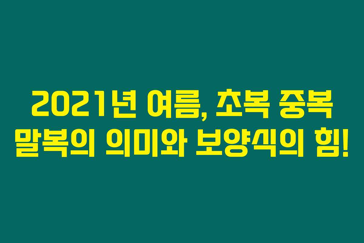2021년 초복은 7월 11일, 중복은 7월 21일, 말복은 8월 10일이에요. 이 날짜에는 효율적으로 여름 보양식을 챙기는 것이 좋아요.