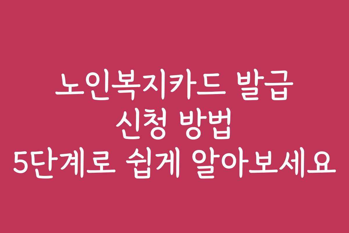 노인복지카드 발급 신청 방법, 5단계로 쉽게 알아보세요