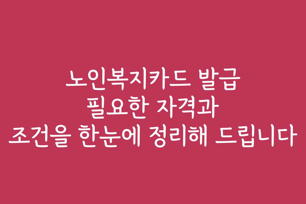 노인복지카드를 발급받기 위해서는 몇 가지 기본 조건이 있습니다. 주로 다음과 같은 내용이 포함됩니다: