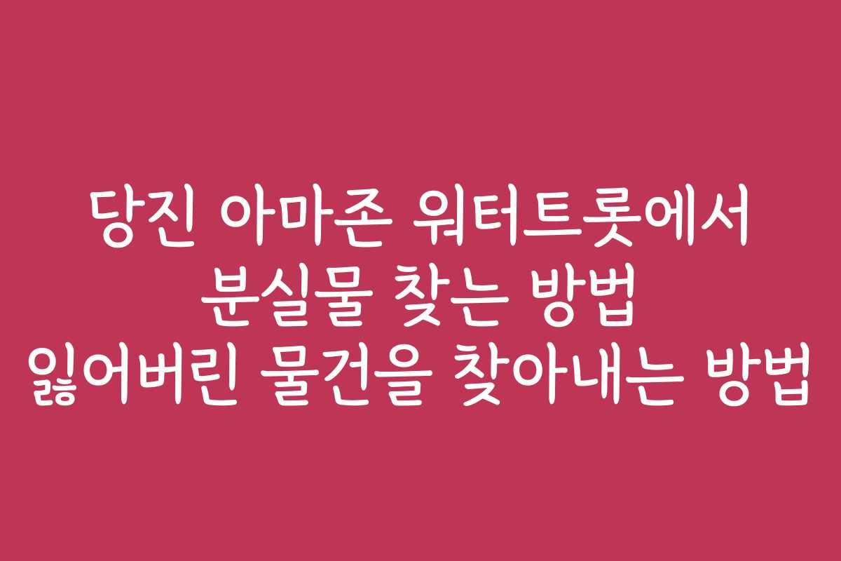 당진 아마존 워터트롯에서 잃어버릴 수 있는 물건에 따라 대응 방법이 달라질 수 있습니다. 주의할 점과 해결 방법을 알아보도록 하겠습니다.