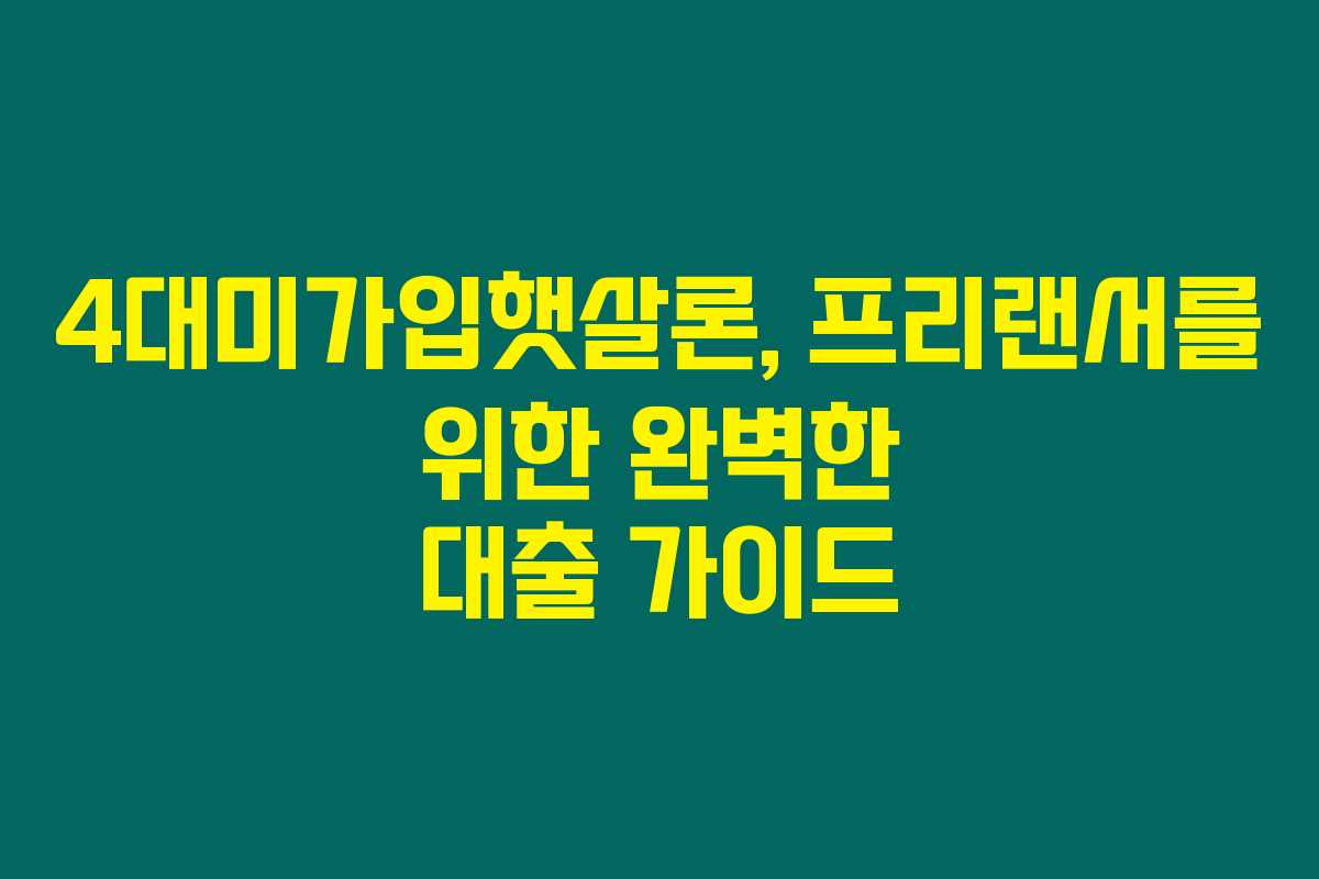 제가 알아본 바로는 4대미가입햇살론은 건강보험, 국민연금 등 4대 보험에 가입되지 않은 자영업자, 프리랜서 등 소득이 불안정한 분들을 위한 정부지원 대출 상품입니다. 이 글을 통해 4대미가입햇살론의 신청 방법, 조건, 한도, 금리 비교, 주의사항 등을 상세하게 알아보겠습니다. 아래를 읽어보시면 이 상품이 여러분에게 적합한지 판단하는 데 큰 도움이 될 거예요.
