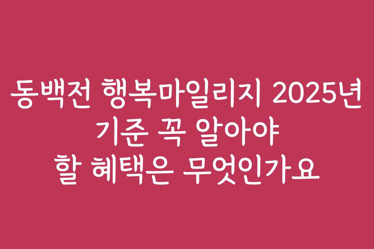 - 왜 2025년 동백전 행복마일리지의 혜택을 알아야 하나요?