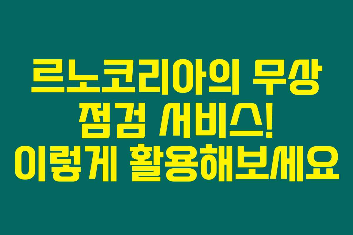 2만 원 상당의 ‘프리미엄 보이는 점검 서비스’에 관심이 많으신가요? 만약 3년 이상의 르노차를 보유하고 계신다면 이번 이벤트는 놓칠 수 없는 기회랍니다. 아래를 읽어보시면 이 점검 서비스의 장점과 예약 방법까지 한눈에 알 수 있어요!