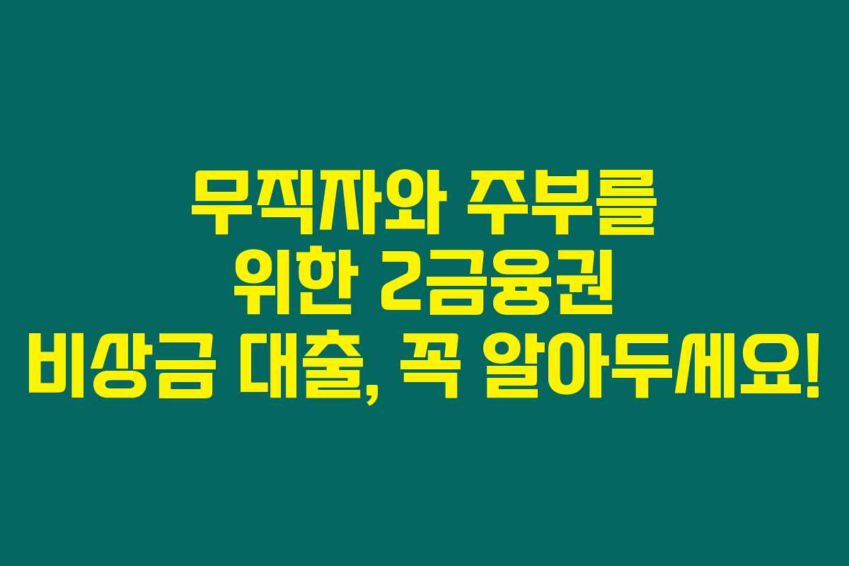 이렇게 무직자와 주부를 위한 2금융권 비상금 대출 상품에 대해 살펴보았습니다. 이러한 대출 상품이 예기치 못한 상황에서 큰 도움이 될 수 있다는 것을 느끼며, 본인의 조건과 상황에 맞는 대출 상품을 잘 선택하시면 좋겠어요. 더 많은 정보를 원하시면 다양한 금융 기관의 상품들을 주의 깊게 비교해보시길 바랍니다.