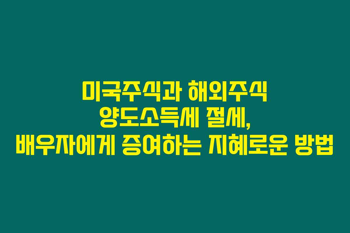 제가 직접 확인해본 결과, 미국주식 및 해외주식을 배우자에게 증여하게 되면 다양한 절세 효과를 기대할 수 있습니다. 이 글에서는 배우자에게 해외주식을 증여하는 것이 어떤 식으로 양도소득세 절세에 도움이 되는지를 자세히 살펴보겠습니다. 아래를 읽어보시면, 이 방법을 통해 얻을 수 있는 혜택과 절차에 대해 명확히 알 수 있을 거예요.