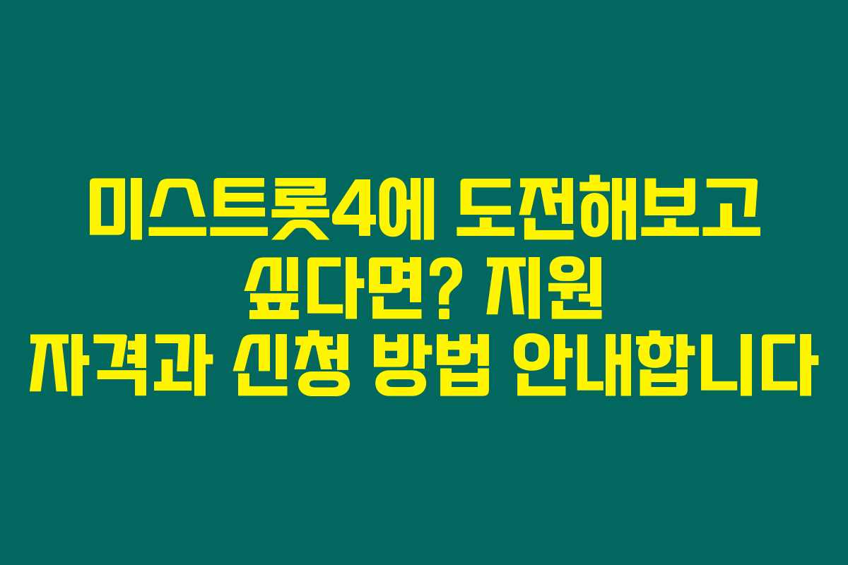 혹시 미스트롯4 오디션에 참여하고 싶지만 어떤 준비를 해야 할지 고민 중이신가요? “미스트롯4 참가자 모집”에 대한 주요 정보를 알고 싶었다면, 아래를 읽어보시면 필수 정보를 한눈에 확인할 수 있습니다. 지원 자격부터 지원 기간 및 신청 방법까지 빠짐없이 알려드릴게요.