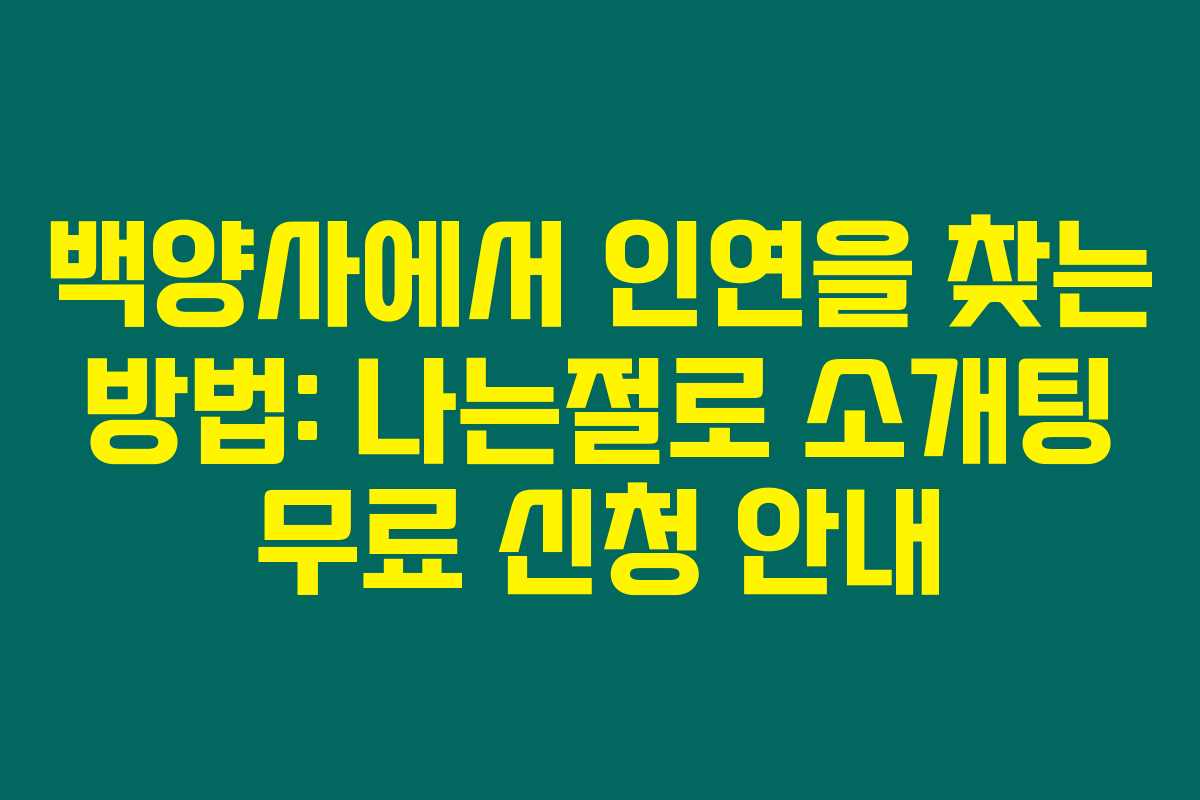 제가 직접 체크해본 바로는, 백양사에서 진행되는 ‘나는 절로’ 소개팅 프로그램은 혼자이거나 외로운 마음을 가진 분들이 서로의 인연을 찾을 수 있는 훌륭한 기회예요. 2024년 11월 2일부터 3일까지 열리는 이 특별한 행사는 아름다운 가을 풍경을 배경으로 하여 참가자들에게 잊지 못할 경험을 제공합니다. 아래를 읽어보시면 무료 신청 방법 및 행사 내용에 대해 자세히 알 수 있어요.