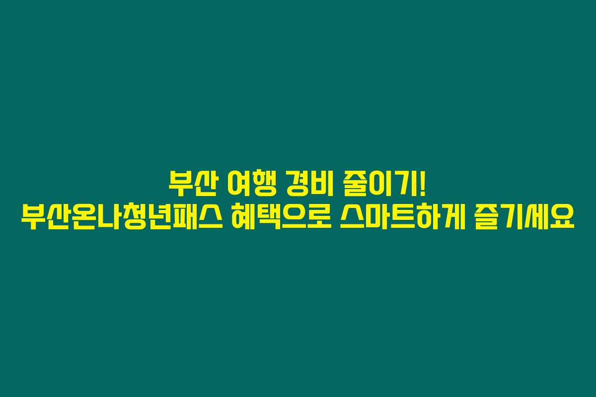 부산을 계획 중이시라면, 부산 여행 경비를 절약할 수 있는 꿀팁이 궁금하실 겁니다. 특히 ‘부산온나청년패스’는 부산에서 특별한 경험을 하고자 하는 청년들에게 알찬 혜택을 제공합니다. 부산 여행의 경비를 대폭 줄이고 풍성한 경험을 누려보고 싶다면, 꼭 주목해 보세요! 아래를 읽어보시면 부산온나청년패스를 통해 얻을 수 있는 다양한 혜택과 신청 방법을 알차게 정리했습니다.