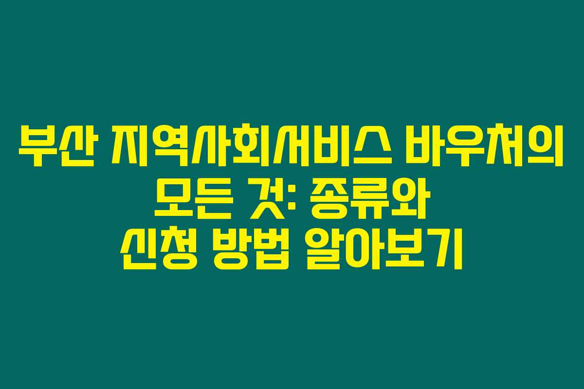 제가 리서치해본 결과로는 부산 지역사회서비스 바우처는 경제적 지원뿐만 아니라 다양한 사회적 서비스의 접근성을 높이기 위해 존재하는 매우 중요한 제도입니다. 부산시민이라면 누구나 이용할 수 있는 이 바우처 서비스에 대해 아래를 읽어보시면 상세히 알아보실 수 있습니다.