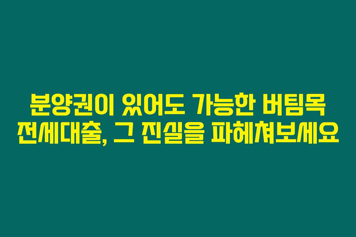 제가 알아본 바로는, 분양권을 보유하고 있어도 버팀목 전세대출을 받을 수 있습니다. 이는 분양권이 미등기 상태이기 때문에 주택으로 간주되지 않기 때문인데요. 하지만 그 과정에서 발생할 수 있는 여러 가지 조건과 규제를 알고 계셔야 합니다. 아래를 읽어보시면, 제 경험을 바탕으로 한 전세대출과 분양권에 대한 모든 것을 정리해 드리겠습니다.