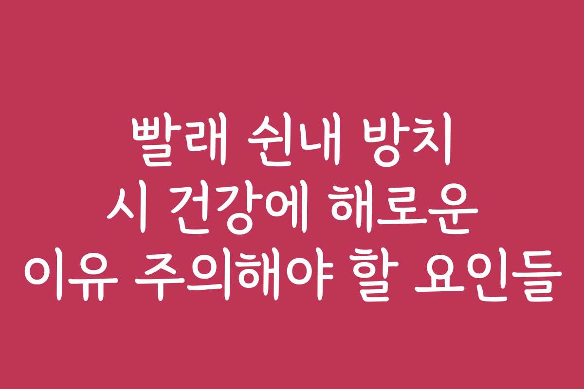 빨래를 세탁한 후에도 쉰내가 나는 경험, 많은 분들이 겪어보셨을 겁니다. 빨래 쉰내를 방치할 경우 건강에 해로운 이유와 그로 인해 발생할 수 있는 문제에 대해 알아보겠습니다. 어떻게 이러한 상황을 예방할 수 있을까요? 함께 알아보아요.
