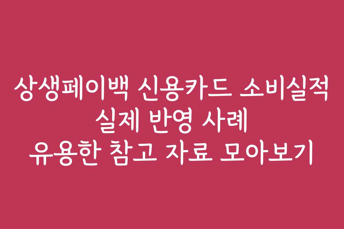 상생페이백 신용카드 소비실적 실제 반영 사례 유용한 참고 자료 모아보기