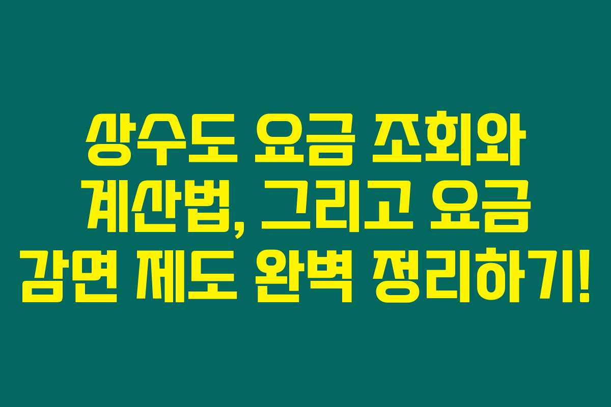 상수도 요금은 매월 생활비 중 빠질 수 없는 항목이지만, 어떻게 요금을 계산하고 조회할지 모른다면 정말 고생하게 되죠. 아래를 읽어보시면 상수도 요금 조회 방법과 계산법, 그리고 다양한 요금 감면 제도까지 꼼꼼히 설명드릴 테니 놓치지 마세요!