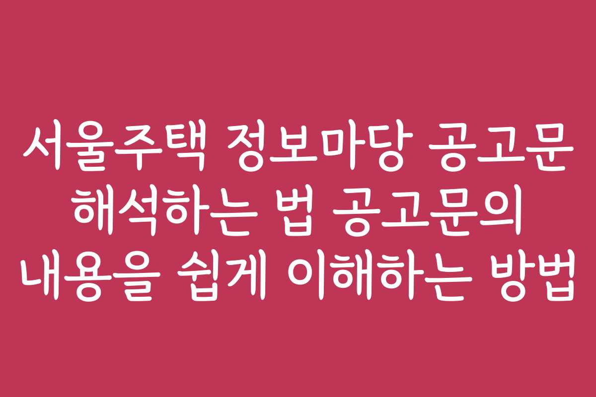 서울주택 정보마당 공고문 해석하는 법 공고문의 내용을 쉽게 이해하는 방법
