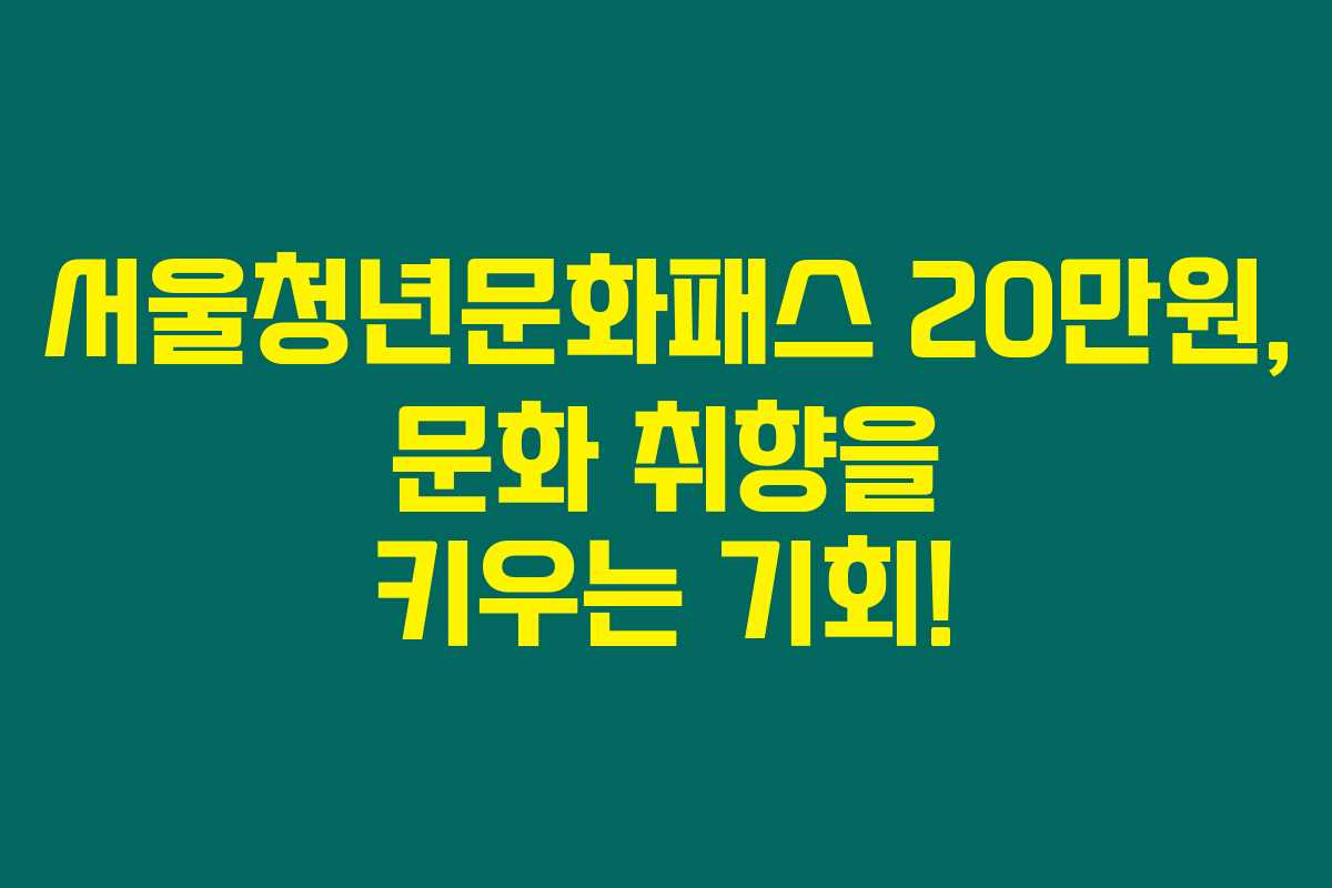 마무리하자면, 서울청년문화패스는 경제적 부담 없이 다양하고 풍부한 문화예술 체험을 할 수 있는 좋은 기회입니다. 이러한 유익한 시스템을 통해 많은 청년들이 문화적인 즐거움을 찾을 수 있기를 바라며, 지원 시기를 꼭 놓치지 마세요!
