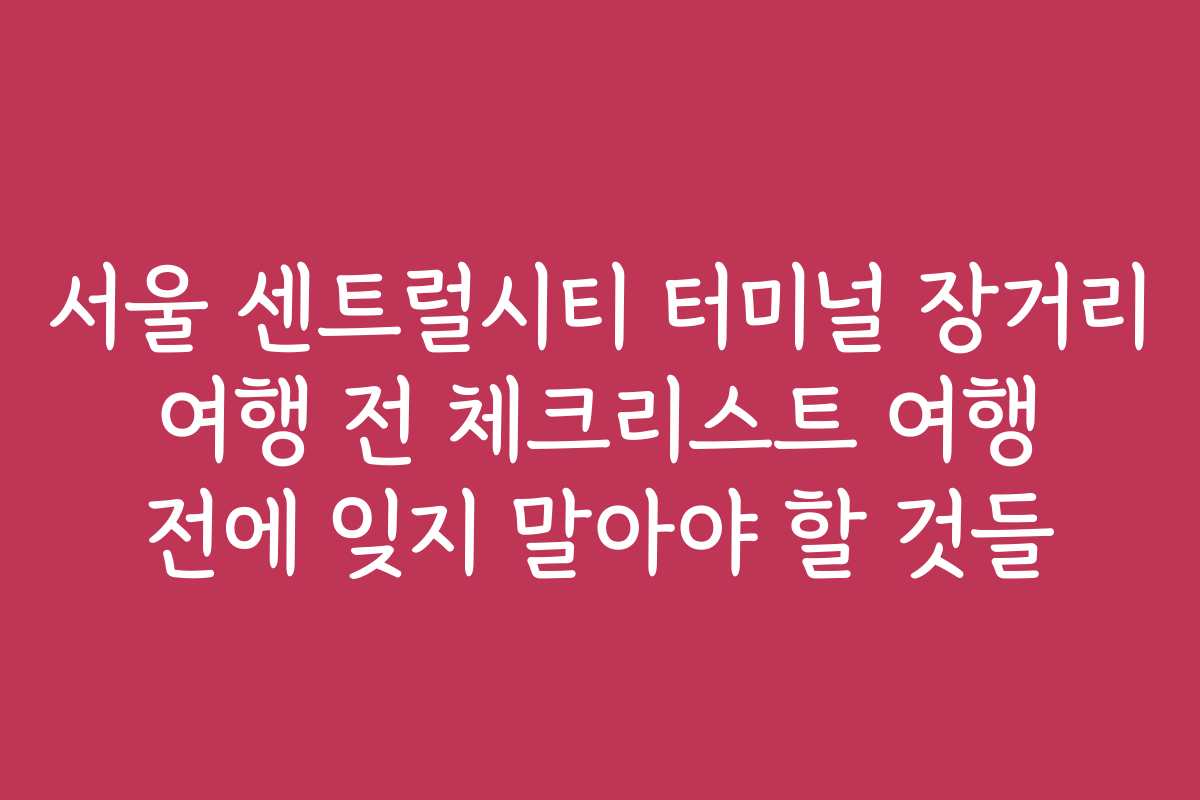 서울 센트럴시티 터미널 장거리 여행 전 체크리스트 여행 전에 잊지 말아야 할 것들