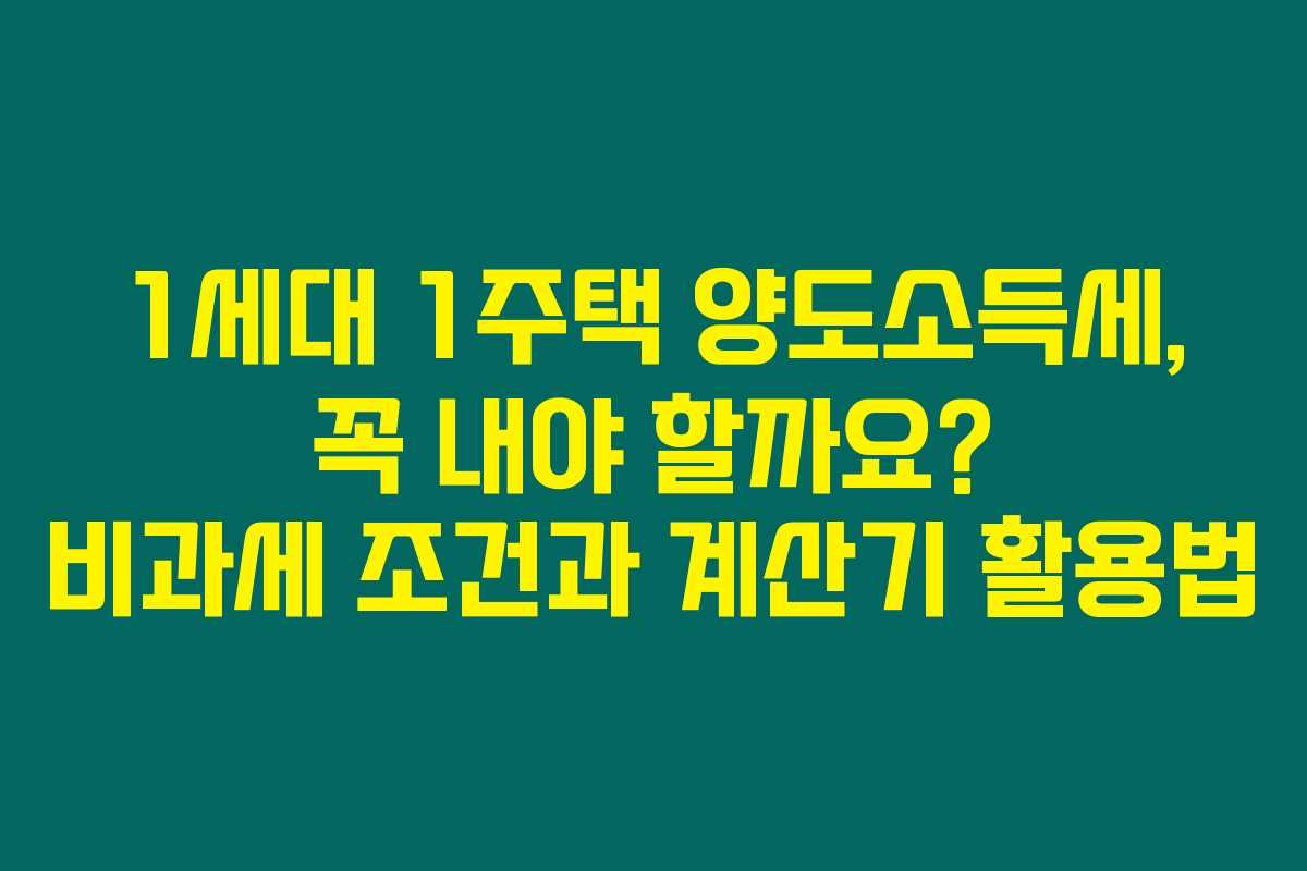 1세대 1주택을 보유하고 있다면, 양도소득세를 비과세 받을 수 있는 조건이 몇 가지 있습니다. 이 조건들을 잘 이해하는 것이 중요하답니다.