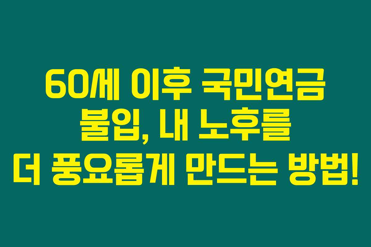 60세 이후 국민연금 불입, 내 노후를 더 풍요롭게 만드는 방법!