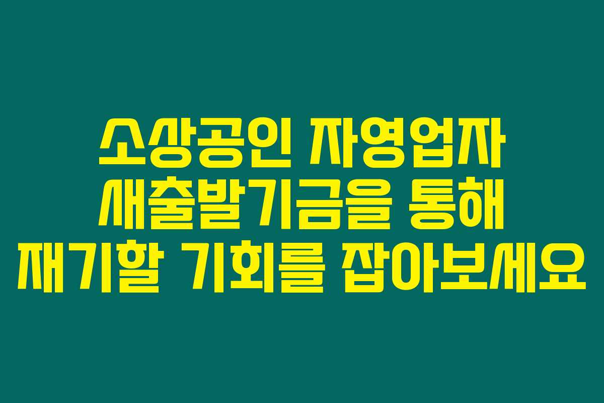 제가 직접 체크해본 바로는, 최근 들어 많은 소상공인과 자영업자들이 코로나19로 인해 경제적인 어려움을 겪고 있습니다. 이에 따라 새출발기금이라는 프로그램이 도입되어 어려운 상황에 처한 자영업자들에게 소중한 재정적 지원을 제공합니다. 아래를 읽어보시면 새출발기금의 신청 방법, 시기, 조건 등에 대한 자세한 정보를 확인하실 수 있습니다.