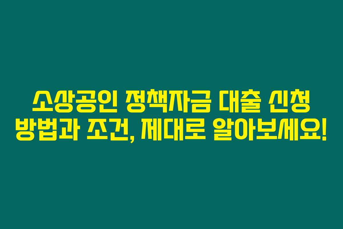 제가 직접 체크해본 바로는 소상공인 정책자금 대출은 많은 소상공인들에게 매우 중요한 자금 지원 프로그램입니다. 이 정보를 통해 소상공인 여러분이 필요한 자금을 쉽게 신청하고, 적합한 조건을 이해할 수 있을 것입니다. 아래를 읽어보시면 소상공인 정책자금 대출의 신청 방법과 대출 조건에 대해 자세히 알 수 있어요.