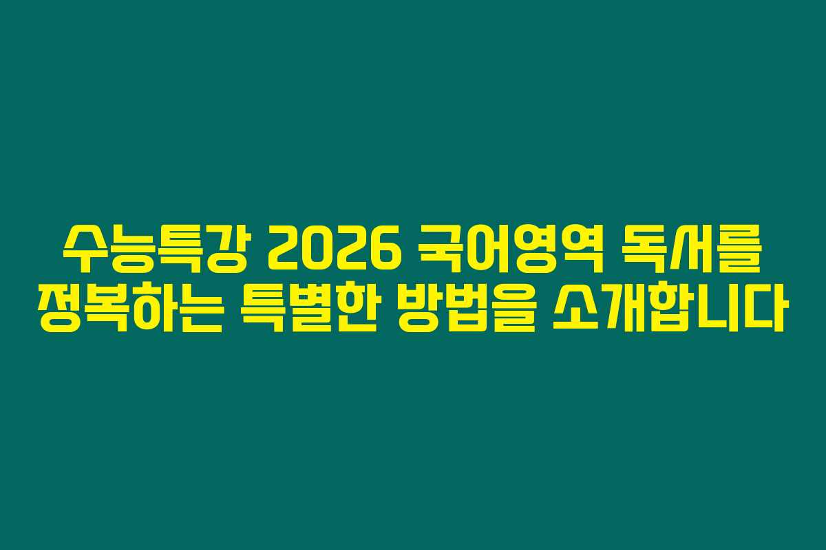 수능특강 2026 국어영역 독서 공부법은 어떻게 되나요?