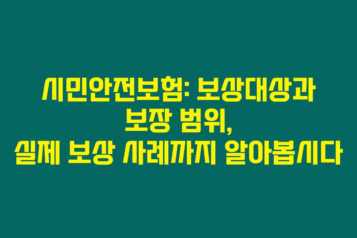 시민안전보험에 대해 궁금하신가요? 만약 예기치 못한 사고나 재난으로 어려움을 겪는다면 어떻게 대처할 수 있을까요? 시민안전보험은 그 고민을 덜어줄 수 있는 좋은 방법이랍니다. 아래를 읽어보시면 시민안전보험의 보상대상과 보장 범위는 물론 실제 보상 사례까지 알아보실 수 있어요.
