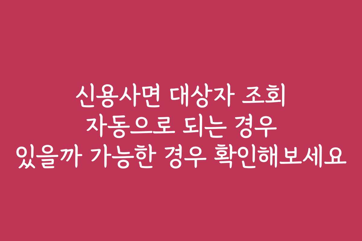 신용사면 대상자 조회 자동으로 되는 경우 있을까 가능한 경우 확인해보세요