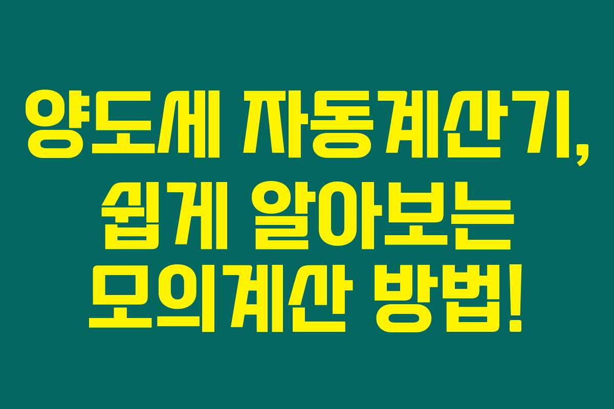양도세에 대한 측면에서 알아본 내용을 아래를 읽어보시면, 제가 직접 경험해본 결과로는 양도세 계산기를 이용한 모의계산 방법이 매우 간편하고 유익하다는 것을 알 수 있습니다. 이 글을 통해 여러분의 세무 지식에 도움이 되었으면 합니다.