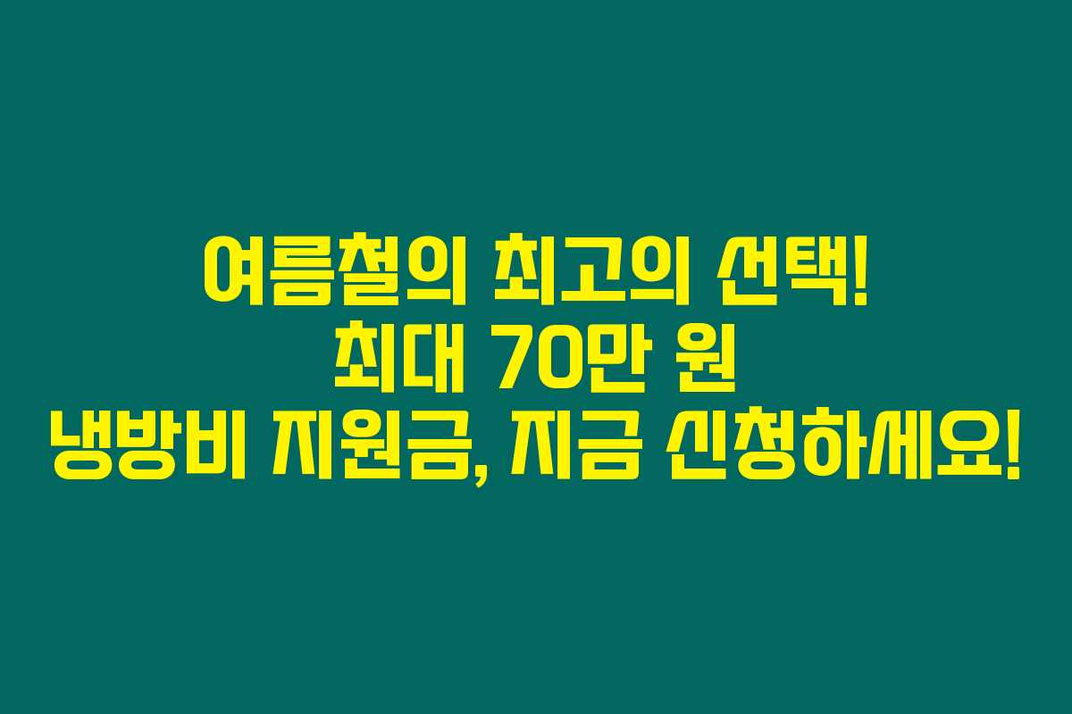 이제 여름철 냉방비 걱정을 덜고 지원금을 신청할 준비가 되셨나요? 70만 원의 지원금을 통해 경제적으로 도움이 되길 바랍니다. 주변에도 필요한 정보 널리 공유해 주세요!
