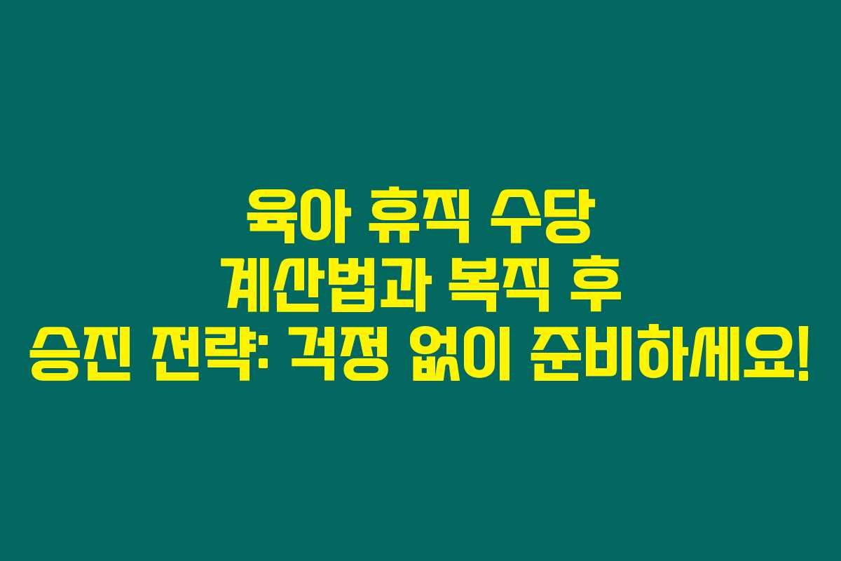 육아 휴직은 많은 부모에게는 정말 큰 결단이죠. 제가 직접 경험해본 결과, 육아 휴직 수당 계산법과 복직 후 어떻게 승진할 수 있을지에 대한 정보가 매우 중요하다고 판단했어요. 이에 대한 상세한 내용을 정리해 보았습니다. 아래를 읽어보시면 육아 휴직을 준비하거나 복직 후 경력을 쌓고 싶은 분들에게 많은 도움이 될 것입니다.