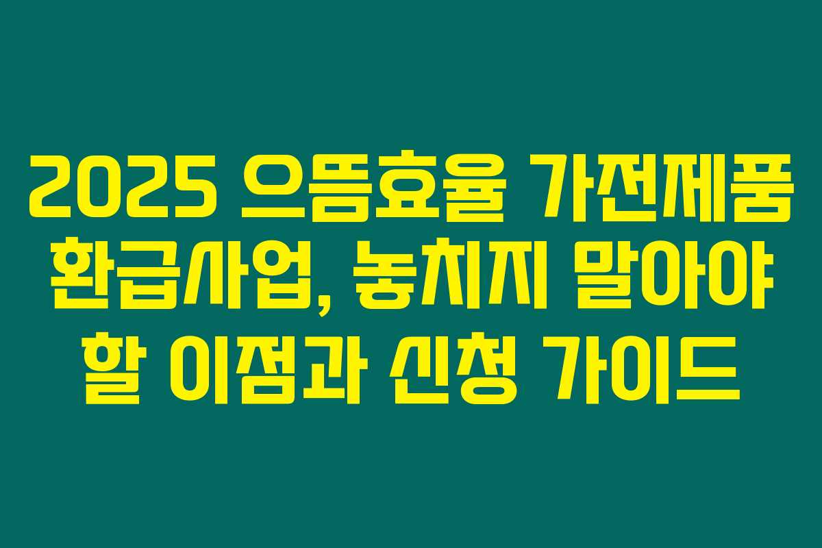 2025년부터 시작되는 으뜸효율 가전제품 환급사업은 에너지 효율성이 뛰어난 제품을 구매하면 큰 환급 혜택을 받을 수 있는 기회입니다. 아래를 읽어보시면, 이 사업을 통해 어떤 조건을 충족해야 하고, 누가 혜택을 받을 수 있는지에 대한 정보와 함께, 신청 방법까지 자세히 안내해드릴게요.