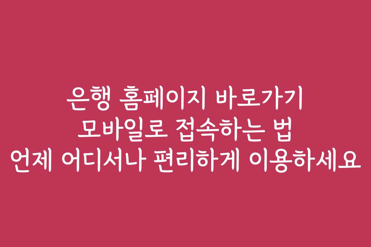 은행 홈페이지 바로가기 모바일로 접속하는 법 언제 어디서나 편리하게 이용하세요
