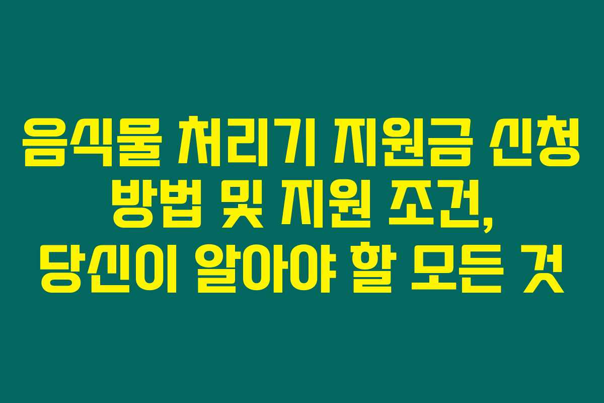 음식물 처리기 지원금을 받으려면, 해당 지역에서 음식물 감량화 사업을 운영하고 있어야 하며, 거주하는 지역이 지원 대상이어야 합니다.