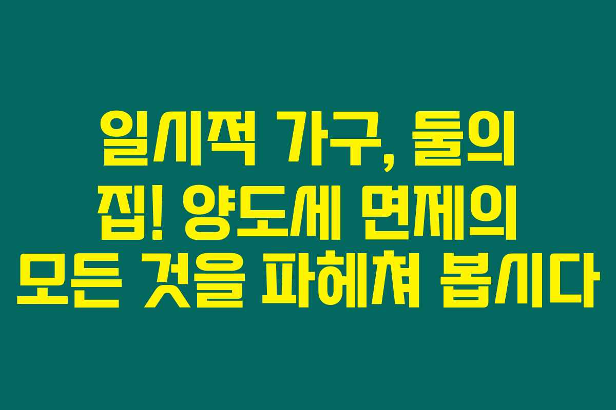 제가 알아본 바로는, 국내에 1주택을 소유한 가구가 다른 주택을 취득하면서 일시적으로 2주택이 되는 경우가 많아요. 이 경우, 종전의 주택을 취득한 날로부터 1년 이상이 지나고, 이후에 다른 주택을 취득하면 특별한 조건을 만족하게 되면 양도세 비과세 적용이 가능하답니다.