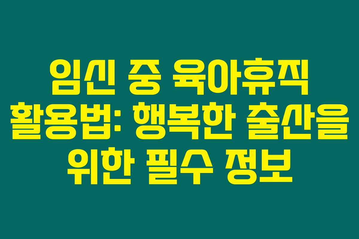 제가 직접 경험해본 결과, 임신 중 육아휴직 제도 활용에 대한 정보는 모든 예비 부모들에게 매우 유용하답니다. 특히 산전육아휴직과 육아휴직급여를 신청하는 방법 등에 대해 알아보시면 보다 밝고 행복한 출산을 맞이할 수 있을 거예요.