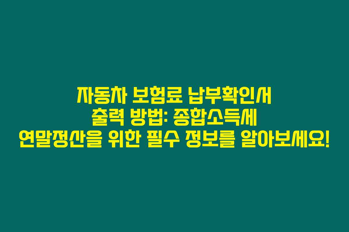 제가 직접 경험해 본 바로는, 종합소득세 신고에 필요한 자동차 보험료 납부확인서를 출력하는 방법이 생각보다 간단하답니다. 따라서 이 글에서는 자동차 보험료 납부확인서를 출력하는 다양한 방법에 대해 상세히 설명해드릴게요.