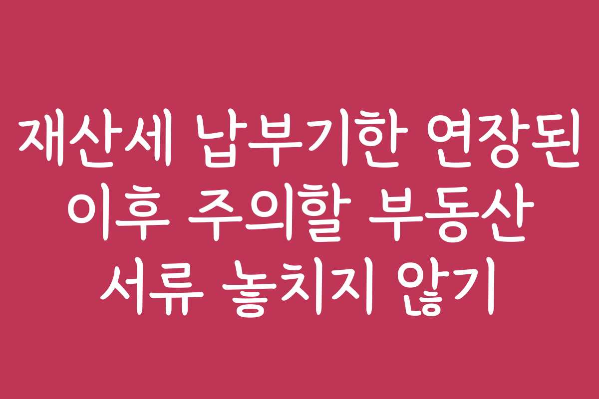 재산세 납부기한이 연장되면서 혼란을 겪고 있나요? 여러 가지 부동산 서류를 놓치는 위험이 커졌습니다. 본문에서는 재산세 납부기한 연장 이후 주의해야 할 사안을 상세히 설명합니다.