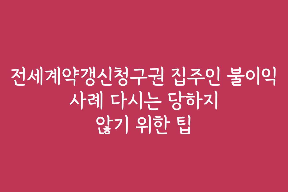 전세계약갱신청구권 집주인 불이익 사례 다시는 당하지 않기 위한 팁