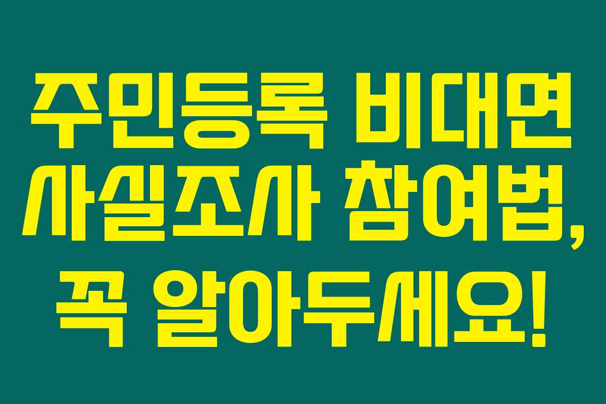 주민등록 비대면 사실조사에 참여하고 싶으신가요? 하지만 매번 외출하기 어려운 상황이라면 이 글 통해 유용한 정보를 확인해 보세요. 주민등록법에 따르면 비대면으로도 간편하게 주민등록 사실조사에 참여할 수 있어요. 참여 방법과 필요한 서류를 알아두면 큰 도움이 될 거예요. 아래를 읽어보시면 이 모든 내용을 쉽게 이해할 수 있을 거랍니다.