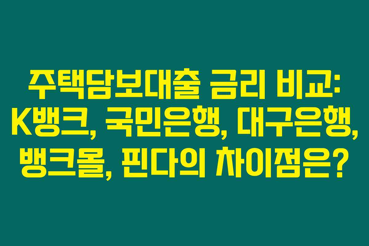 주택담보대출을 고려할 때, 금리는 가장 중요한 요소 중 하나랍니다. 제가 직접 리서치한 바로는, K뱅크, 국민은행, 대구은행의 금리를 비교하는 것이 많은 이들에게 유용할 것 같아요. 아래를 읽어보시면 각 은행의 특징과 금리에 대해 자세히 알 수 있을 거예요.